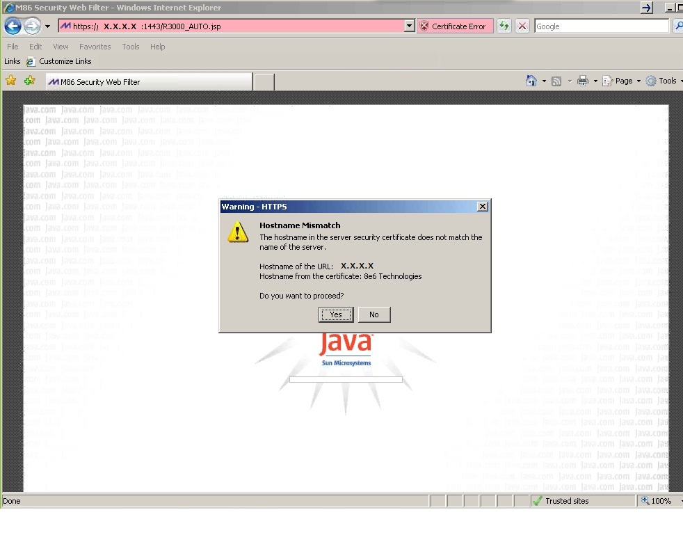 If you are seeing this error when trying to log in to theWeb Filter you will need recreate the Self Signed Certificate.