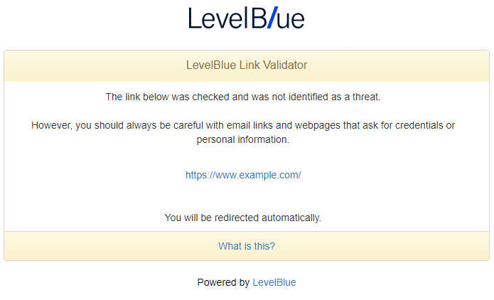 • Once evaluation is complete, if no threats are found the user will be notified and redirected to the original site.