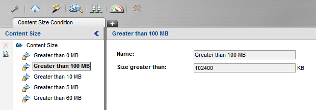 Version 10.x: Policies > Condition Settings > Content Size