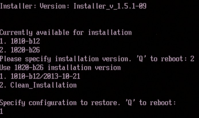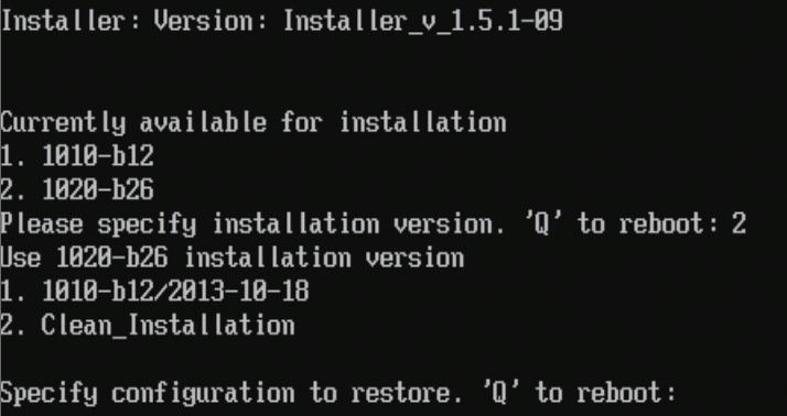 4. Choose the appropriate option for the SWG OS 10.2 version. The following screen should display asking for the configuration to restore: