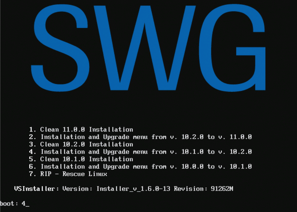 6. On reboot, make sure that the SWG server is booting from the hard drive, and not from the USB drive.