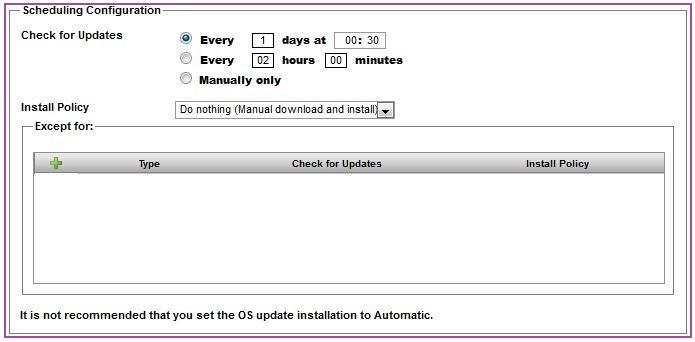 2. Make sure that the Install Policy is set to Do nothing (Manual download and install) and that no exceptions are set, as shown below: