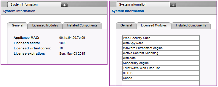 5. A confirmation screen opens if the license initialization is successful. Make sure the license details listed in the Licensed Modules tab matches your SWG license options: