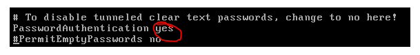 - Use the arrow keys to find the line that says PasswordAuthentication, and change it to yes