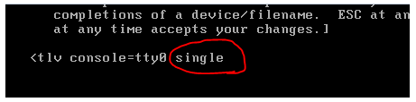 You should now be back to the previous screen. Press b to boot into single-user mode.