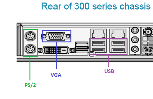 - Connect a monitor to the VGA port and the keyboard to a USB or PS/2 port on the back of the system: