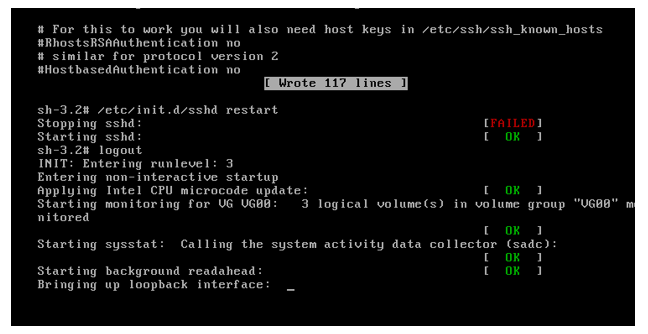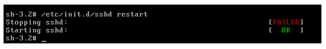 - Restart sshd by running the command /etc/init.d/sshd restart