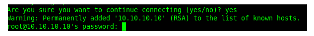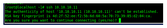 - Enter SSH [Filter IP] (for example, SSH 10.10.10.11 ). When prompted to continue connecting, type yes.