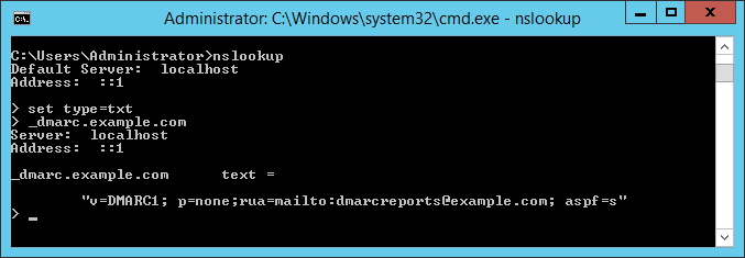 v=DMARC1; p=none; rua=mailto:dmarcreports@example.com; aspf=s